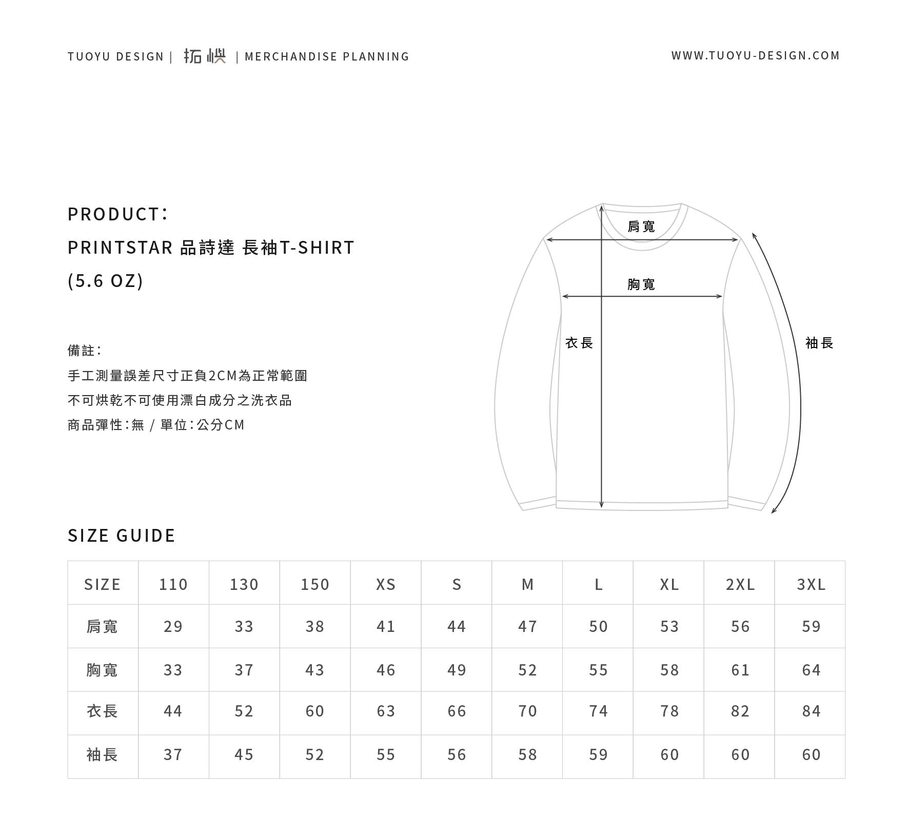 PRINTSTAR 天竺棉長袖T-SHIRT(5.6OZ)