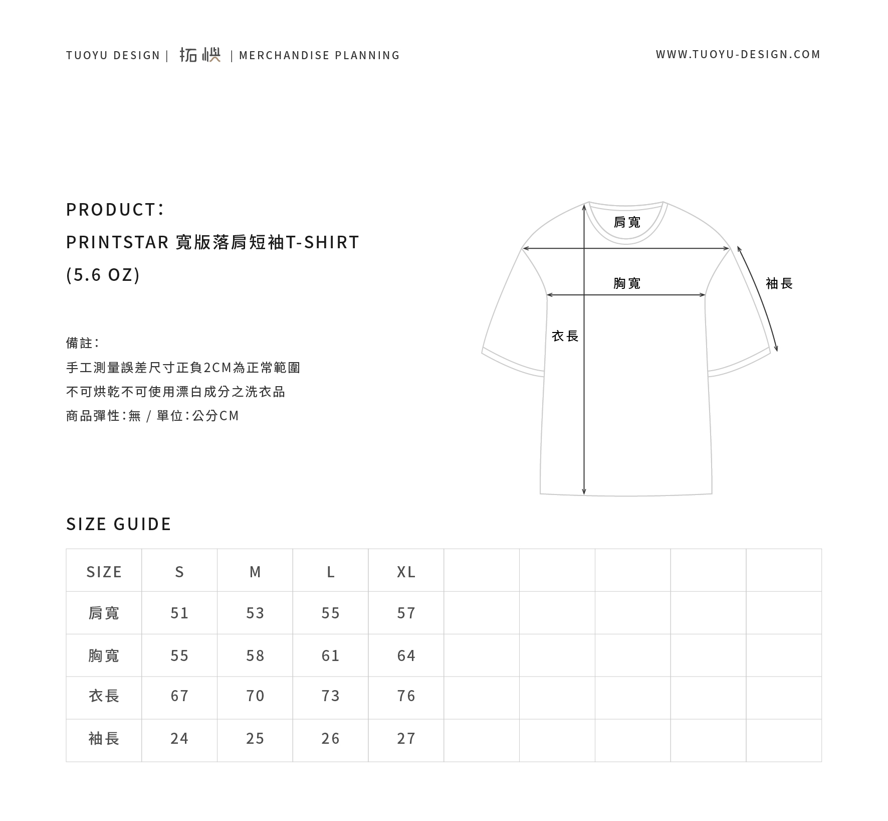 PRINTSTAR 落肩寬版 天竺棉 (5.6OZ)