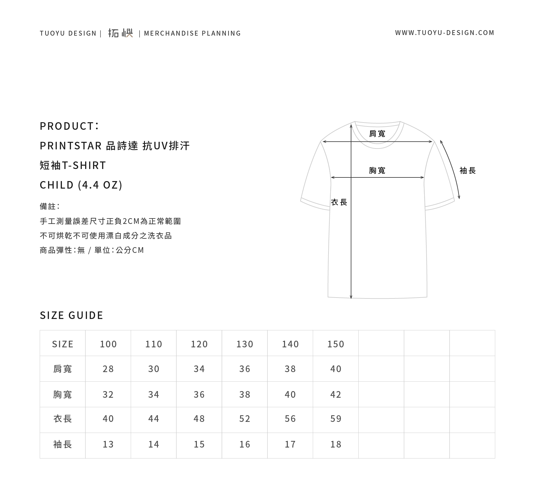 PRINTSTAR 抗UV排汗 (4.4OZ) 孩童