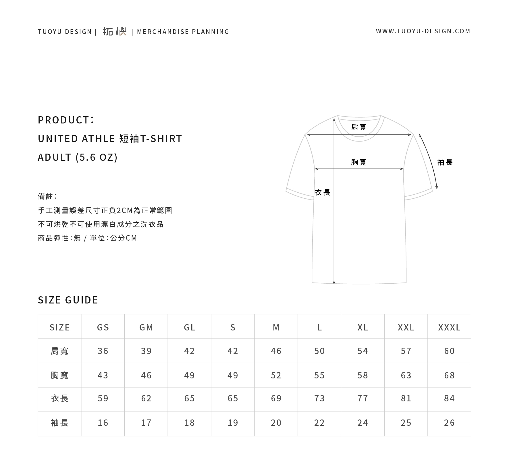 UNITED ATHLE 純棉 (5.6OZ) 成人