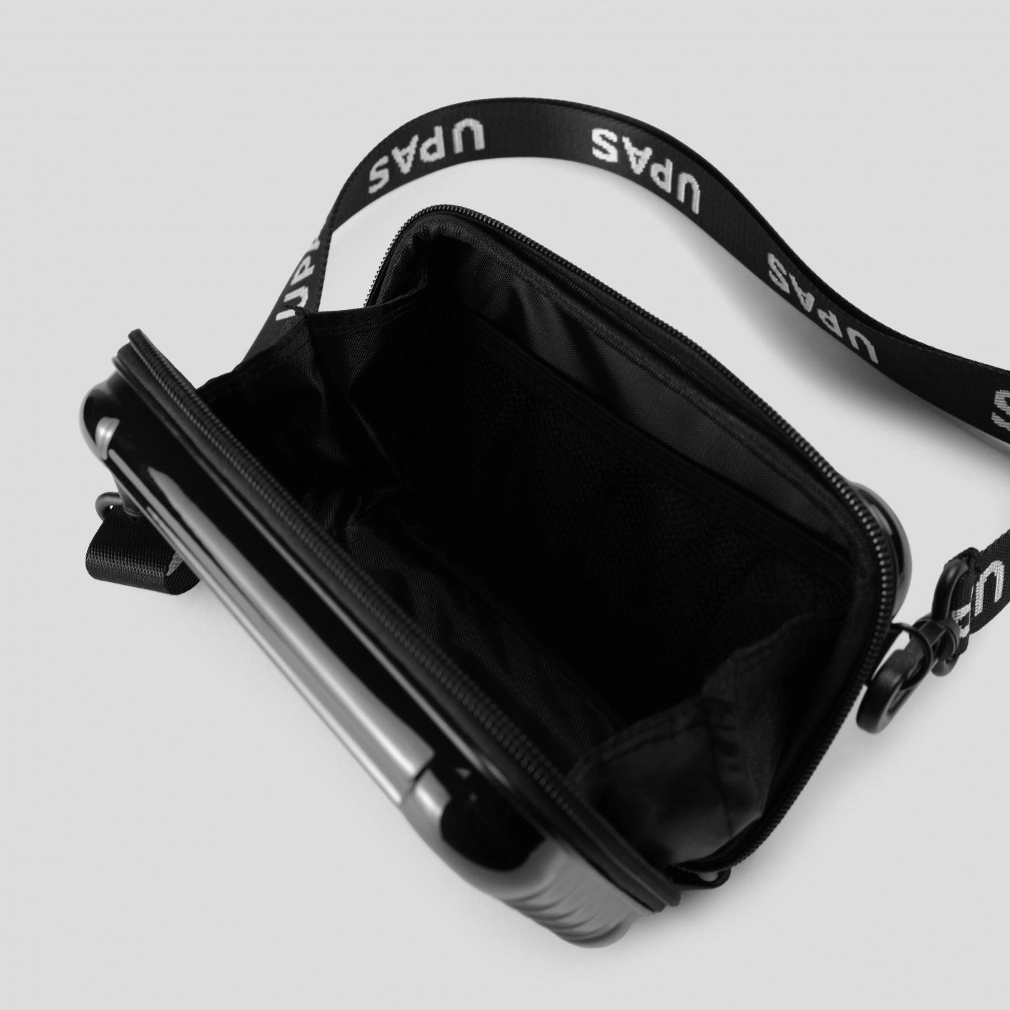 迷你行李箱硬殼包,可自行調整掛繩方向使用,外箱可印刷LOGO,背繩可織圖案。