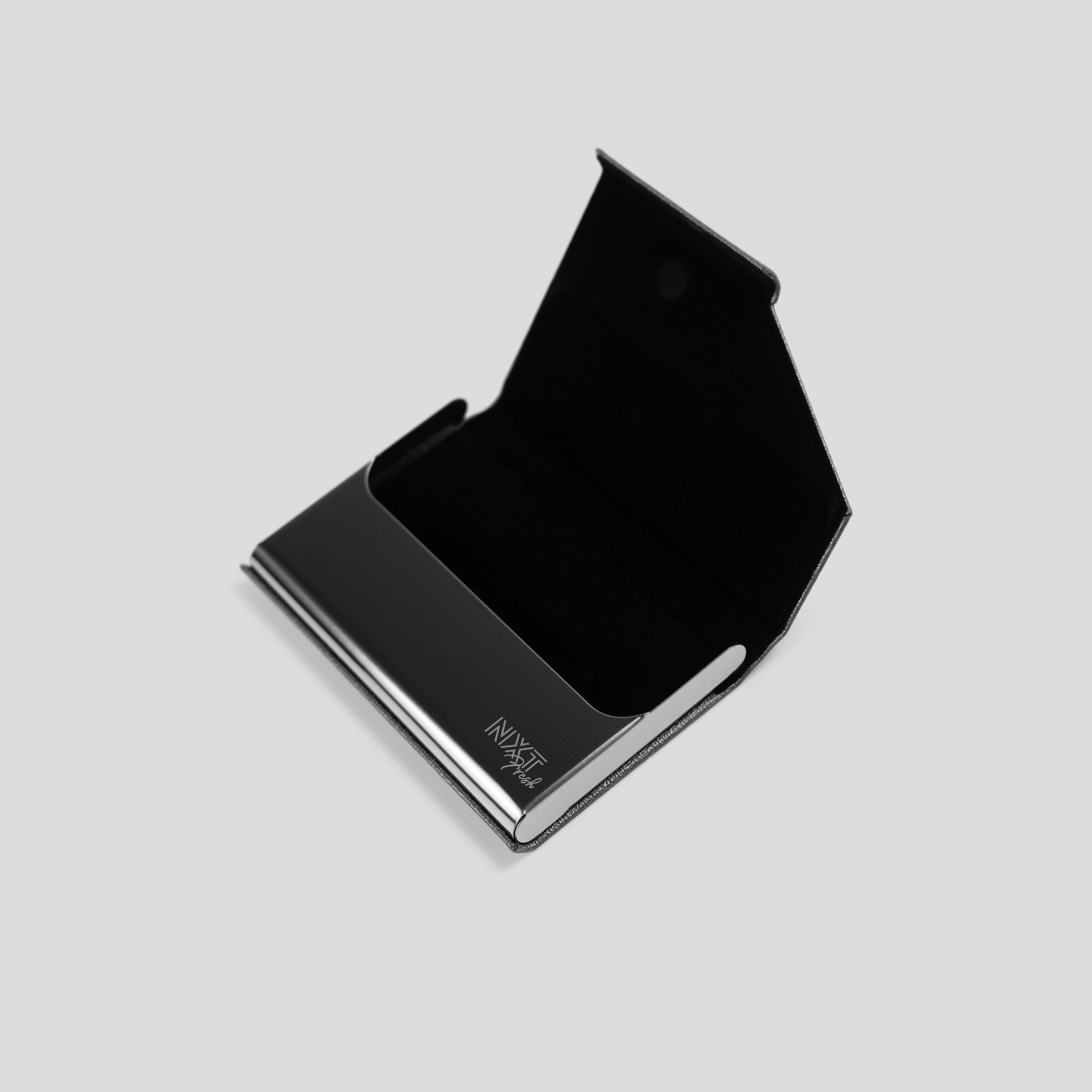 皮革名片收納盒,內裏黑色絨布,金屬處可訂製雷射雕刻LOGO