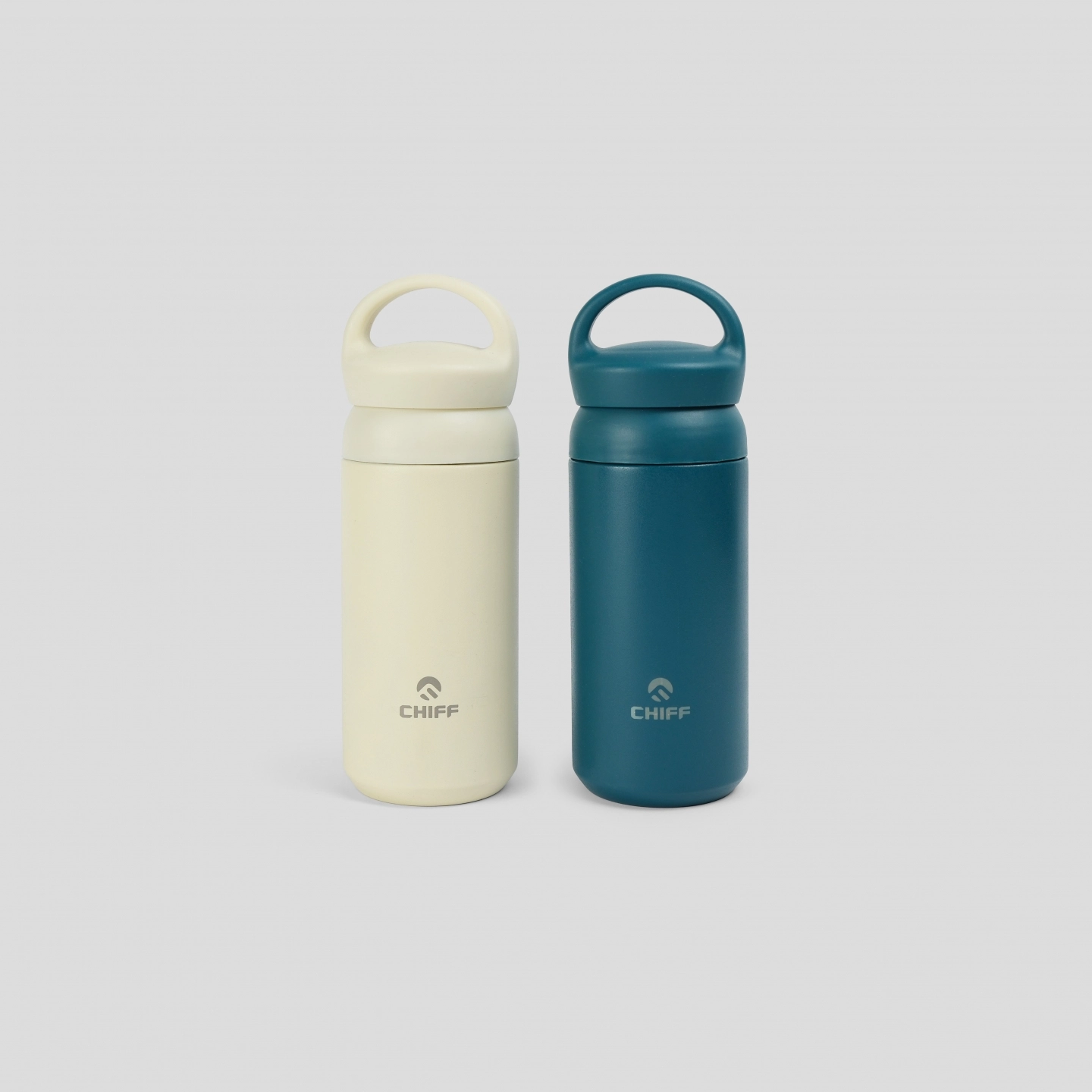 可手提雙層不鏽鋼保溫瓶,內層為304不鏽鋼,外層磨砂質感。 雙層設計保溫保冷有效達到12小時,杯蓋附茶槽設計,可分離清潔不怕卡垢。 瓶身可雷射雕刻圖樣、LOGO ☉ Client: (圖四五) CHiFF 啟賦科技 ☉ 容量:350ML ☉ 尺寸:高20.3CM 直徑6.5CM - ☉ 最低製作量:50個